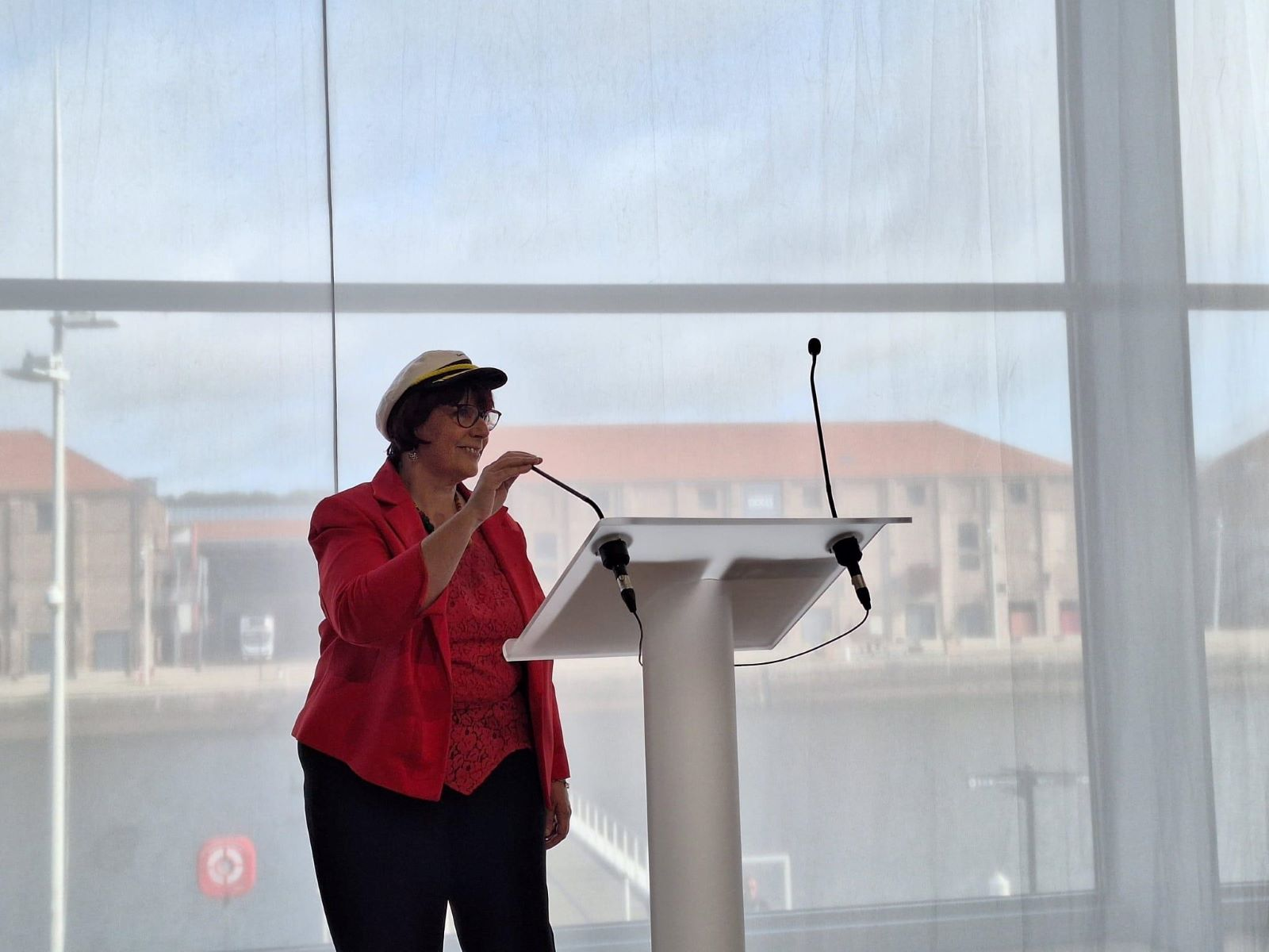 Catherine Vautrin, ce vendredi au Havre (crédit : Louise Claereboudt)