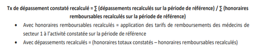Mais comment en est-on arrivé à "l'effet inverse" ? Pour Richard Talbot, c'est le "piège du dépassement recalculé". Le "taux de dépassement constaté recalculé" est défini dans la convention "comme le rapport du total des dépassements annuels aux honoraires remboursables annuels calculé pour les deux années de la période de référence sur la base des tarifs de remboursement des médecins de secteur 1 appliqués à l’activité du médecin".